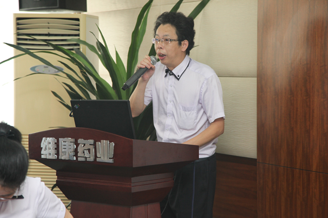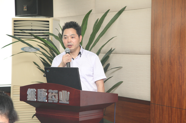 刘根才总经理首先致欢迎辞,对专家团齐聚维康,助推维康科技发展表示由衷的感谢。并简要介绍了维康近年来重点品种的生产研发和销售情况,以及在生产工艺技术创新和现代化制药设备引进运用等方面进行了详细汇报。