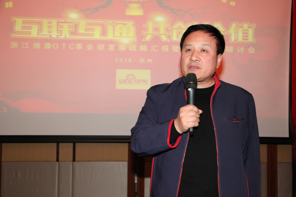 公司副总经理孔晓霞首先代表浙江维康致欢迎词,她对每位VIP连锁药店客户及其单位在过去的一年中对于维康的支持与帮助表示了感谢,同时表达了希望2016年能够再次合作、携手共创未来的美好愿景。随后,OTC事业部总经理何家巨作《OTC事业部发展战略汇报》,他以详细的数据分析对2015年度的市场销售成绩进行了汇报并就对211活动启动数据和2016年合作规划进行了展示和解说。