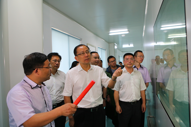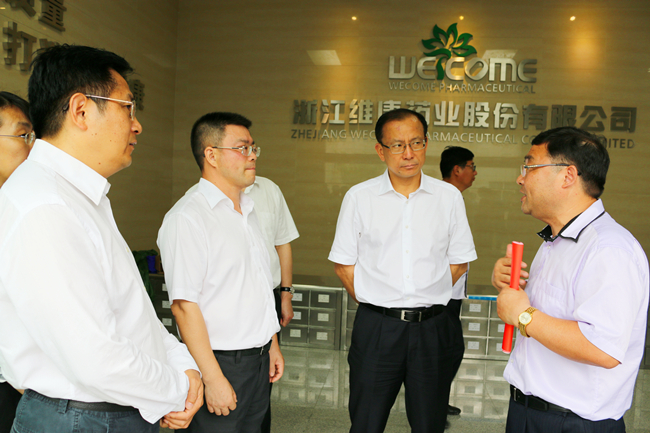2016年5月25日,丽水市委书记史济锡,市人民政府常务副市长毛子荣、副市长陈景飞以及市人大常委会副主任徐岳明等领导一行在丽水经济技术开发区党工委书记、管委会主任丁绍雄,副主任洪勇华等领导的陪同下莅临公司调研指导。卢卫芳副董事长陪同史济锡书记一行参观生产车间,详细汇报了企业生产经营、科技创新、产业信息化以及发展规划等情况。听完汇报后史书记对企业所取得的成绩给予了充分肯定,并表示市委市政府将集聚力量全力以赴支持帮助企业快速发展。同时,他鼓励企业立足新征程,在医药大健康领域做大做强,为丽水区域经济发展贡献新力量。