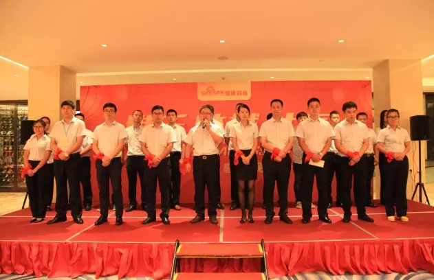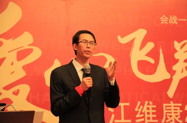 浙江维康董事长刘忠良致辞,他对合作伙伴对活动的参与表示感谢并向在座嘉宾敬酒。刘忠良说,会战一百天,爱心满人间,活动即将启动,做好自己,完善自身,不辜负各方期望,一定打赢百家连锁百日会战。