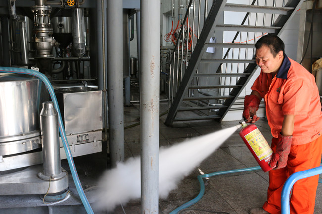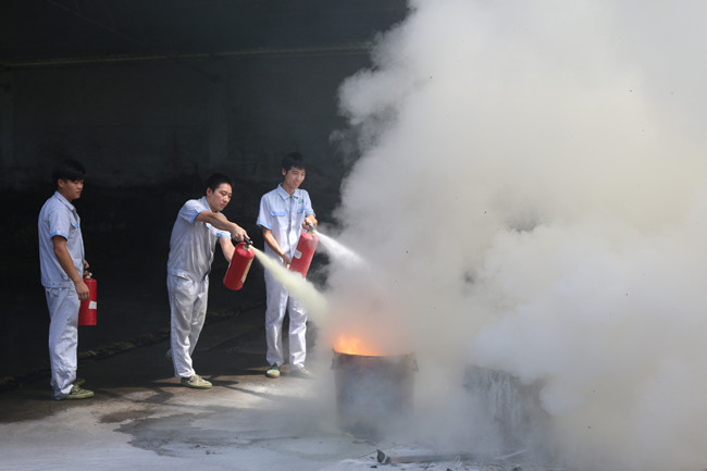 火灾演练结束后,林海波副总经理向大家介绍了灭火器、消防水枪等器材的使用方法和注意事项,在场员工一一学习并现场使用消防水枪和灭火器成功扑灭火苗。
