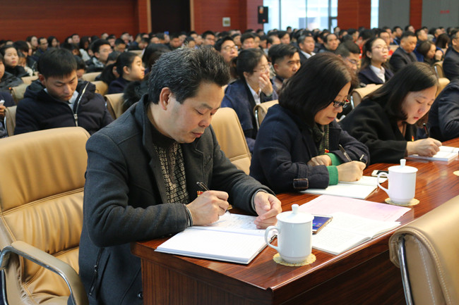 徐平教授从十九大的重要历史意义;新时代,确定历史方位;新思想,提出基本方略;新作为,贯彻新发展理念;新气象,全面从严治党;新征程,而今迈步从头越等六个方面阐述了十九大所提出来的新时代的重要特征,重点讲解了十九大精神和习近平新时代中国特色社会主义思想的重大意义、重要内涵、基本方略和战略部署,对党的十九大精神的思想精髓和核心要义进行了全面宣讲。