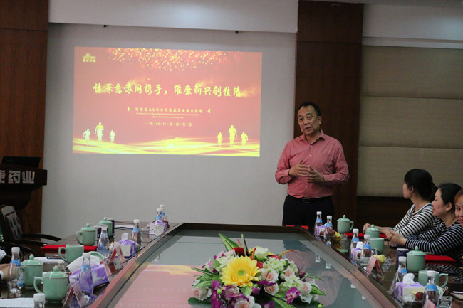 在二楼会议室召开了以“情深意浓同携手,维康新兴创佳绩”为主题的营销互动交流会。党支部书记刘根才首先对新兴药房优秀团队的到来表示欢迎,并就公司发展历程、核心产品、技术研发、营销模式等情况做汇报,重点就维康医药大健康产业园项目进展及企业发展规划进行了介绍。OTC事业部张章奇做“双星计划”和“好嗓子,真清唱”全国连锁药店精英清唱大赛活动宣讲。