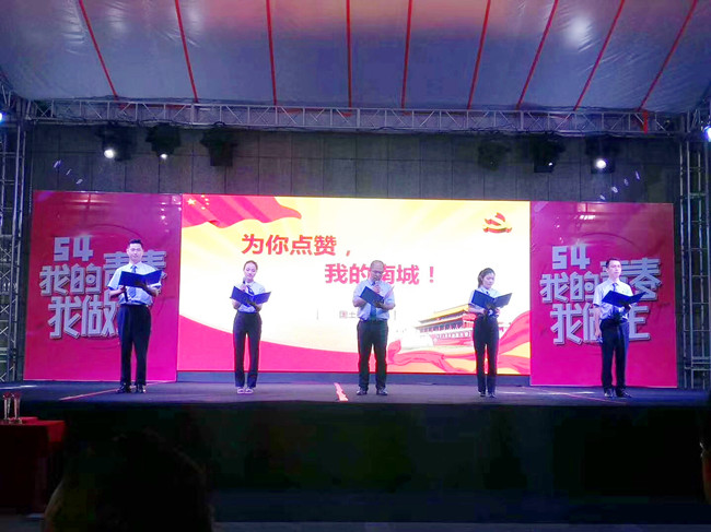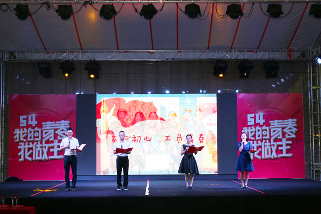 2018年5月3日晚,由丽水经济技术开发区团工委主办的五四主题团日暨“谱青春华章,展时代风采”朗诵比赛,在江泰国际广场隆重举行,来自开发区各机关单位、街道以及企业的17支代表队齐聚一堂,歌颂五四,祝福南城。