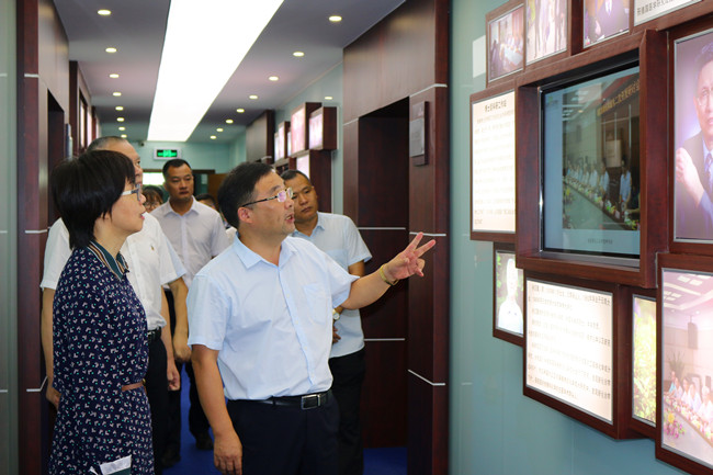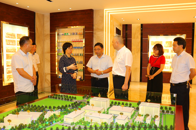 黄利琴主任一行参观了公司展示中心和维康科研苑,卢卫芳总裁介绍了公司目前发展情况和未来发展思路,重点就公司产品研发、人才集聚、科技创新和平台创建等方面情况作详细介绍。