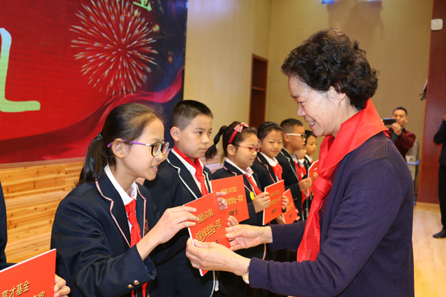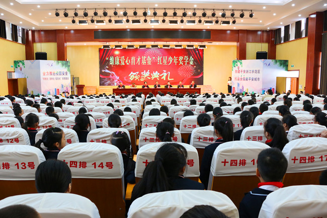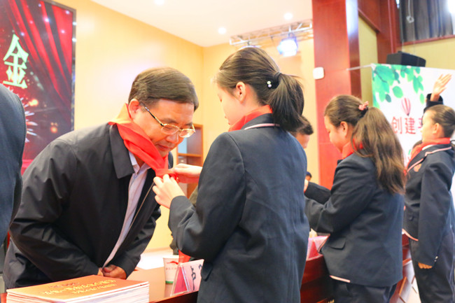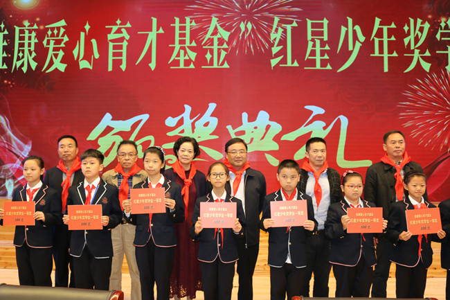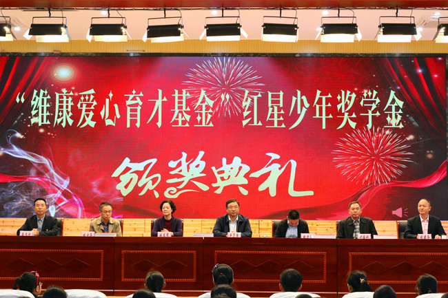 颁奖典礼上,在座领导和嘉宾为获得2017年度“维康爱心育才基金”红星少年奖学金的同学们颁发了奖学金,鼓励他们好好学习,天天向上。红星小学的少先队员代表向与会领导和嘉宾献上了鲜艳的红领巾,表达他们的喜悦与感谢。