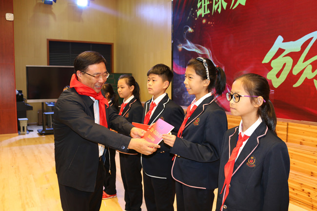 红星小学校长刘建华代表全体师生表达了深深的敬意和真诚的感谢,他希望全体学生在新的征途中再接再厉,每天做最亮的自己,让自己闪闪发光,实现心中的梦想,进而实现伟大的中国梦。