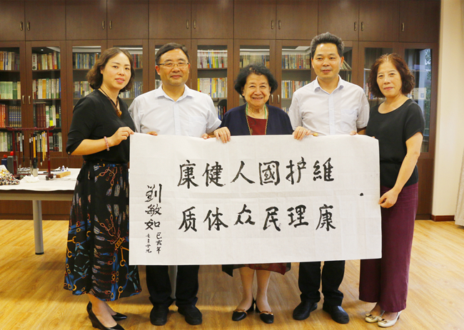 听取介绍时,刘敏如大师频频点头,充分肯定企业专注主业、致力于医药大健康产业发展的思路,她强调:“中医药是中华民族的瑰宝,国家大力发展中医药的决心不容置疑”,并特别为公司题词“维护国人健康,康理民众体质”,表示对开云手机平台致力于继承、弘扬、创新优秀中医药文化的赞许和期望。
