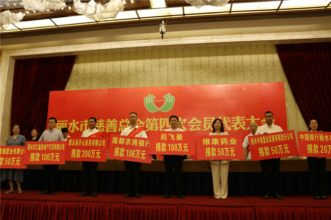 大会表彰了省、市慈善总会先进集体和个人,审议并通过了丽水市慈善总会第三届理事会工作报告、财务报告,选举产生了市慈善总会第四届理事会及理事会领导班子,叶萍董事长当选为丽水市慈善总会第四届理事会副会长。浙江省慈善联合总会陈加元会长、丽水市政府吴晓东市长等领导看望参会代表和受表彰人员并合影留念。